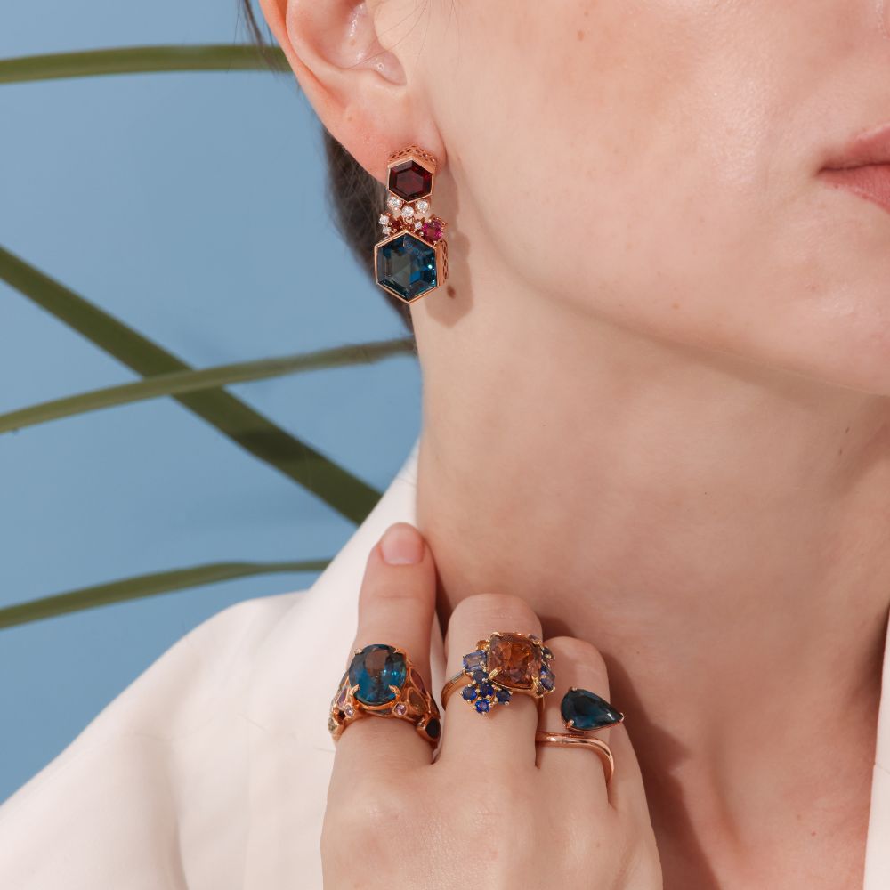 The Aria collection from Zome is a celebration of bold elegance and vibrant beauty, inspired by the lightness and grace of the wind. This exquisite collection features fluid designs that capture the essence of form and movement, with delicate curves and elegant geometric forms evoking a sense of freedom and effortless beauty. Predominantly showcasing large center stones, Aria’s pieces are meticulously accentuated by either delicate enamel work or contrasting gemstones. The collection includes multi-colored and multihued pieces , adding a touch of versatility and flair. Designed to make a statement, the Aria collection embodies the harmony of nature and the elegance of minimalism.It is a testament to the timeless sophistication and artistry that resonate with anyone looking to embrace bold and colorful designs.
