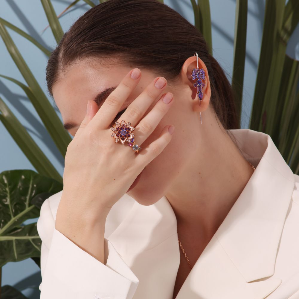 The Celestia collection from Zome is a captivating tribute to the wonders of the cosmos. Inspired by celestial motifs such as stars, moons, and constellations, each piece is designed to capture the mystery and allure of the night sky. Adorned with shimmering midnight gemstones, these creations evoke the beauty and infinite possibilities of the universe. Each piece is a testament to the artistry and craftsmanship that transforms the enchanting night sky into wearable works of art.The Celestia collection is a harmonious blend of elegance and cosmic wonder, perfect for those who dream of the stars and seek to wear a piece of the heavens.